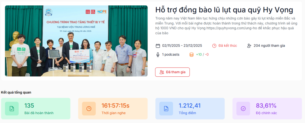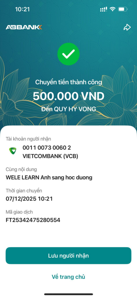 Với 135 bạn hoàn thành, WELE đã ủng hộ vượt lời hứa, quyên góp 500,000 VND vào quỹ hy vọng giúp đỡ các nạn nhân lũ lụt của Vnexpress https://quyhyvong.com/ung-ho